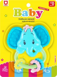 A bájos elefánt alakú csörgő és rágóka minden babát felvidít. Kényelmes fogásával és texturált részeivel kiváló segítség fogzáskor, és támogatja a finommotorikát, az érzékelést és a kéz–szem koordinációt.