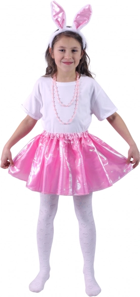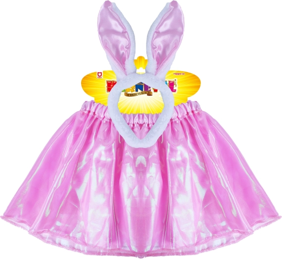 Ez a gyönyörű nyuszi jelmez kislányoknak készült, akik szeretnek a jelmezes bulikon a figyelem középpontjában lenni. A szett egy fényes rózsaszín szoknyácskából és egy rózsaszín nyuszifüles fejpántból áll. A termék könnyű és kényelmes, ami korlátlan mozgást tesz lehetővé.