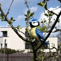 A kék szárnyakkal és sárga pocakkal megjelenített cinege hű kidolgozása a gyerekeket és a gyűjtőket is elbűvöli.