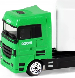 Ez a szenzációs OZO kamion örömet hoz minden kisautó rajongónak. Az 1:87 méretarányú modell fémmel készült, a pótkocsi pedig minőségi PVC-ből, ami garantálja a nagyfokú tartósságot és hosszú élettartamot. Kb. 20 cm hosszúságú, ami ideális minden gyűjtő számára, akik minőségi és részletes játékot keresnek. A kamion szabadonfutó tervvel rendelkezik, ami megkönnyíti és szórakoztatóvá teszi a játékot.