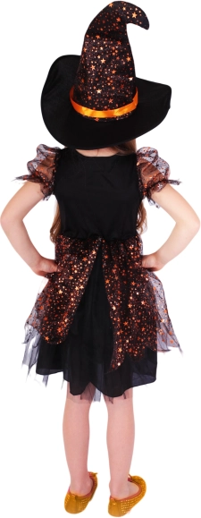 Ez az aranyos varázsló jelmez ideális 6-8 éves kislányok számára. Fekete ruha bolyhos szoknyával és narancssárga részletekkel minden kis varázslónak varázslatos megjelenést kölcsönöz.