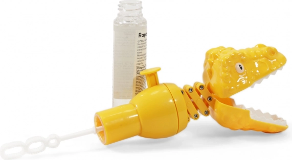 Szórakoztató, dinoszaurusz alakú buborékfújó mozgó fejjel és praktikus fújókával a kupakban. A 40 ml-es tartalom hosszú játékidőt és rengeteg buborékot biztosít bárhol és bármikor. Egyszerű kezelhetőség, biztonságos műanyag és remek szórakozás gyerekeknek a kertben, ünnepségeken és a mindennapi játék során is.