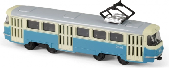 Egyedi, fém retro T3 villamos modell egyedi kék színben, amely 1:87 arányú és 16 cm hosszú. Ez a világ legnagyobb számban gyártott villamostípusának kicsinyített mása, amelyet minden igazi gyűjtőnek érdemes megszereznie.