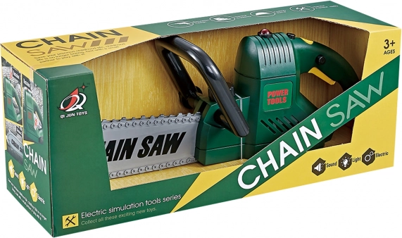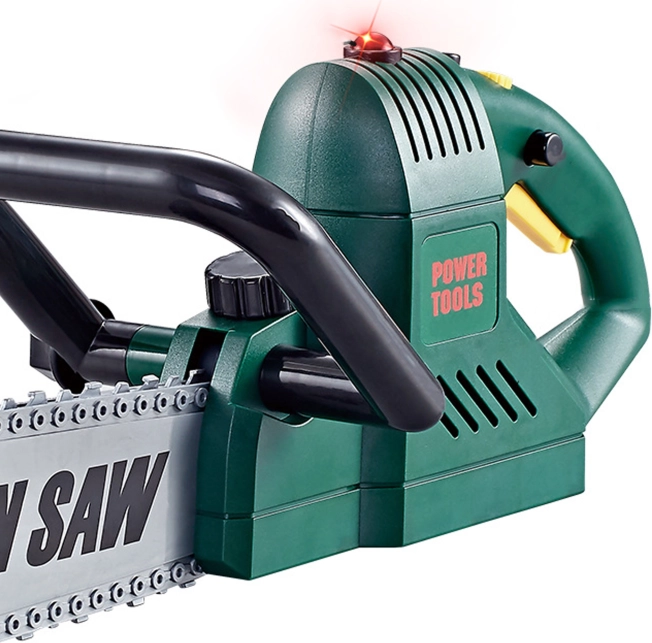 Ez a gyerek láncfűrész valósághű játékélményt nyújt, és fejleszti a képzelőerőt valamint a kézügyességet. A gomb megnyomásakor hanghatás aktiválódik, felgyullad egy kis fény, és forog a lánc, ami hűen utánozza az igazi motoros fűrészt.