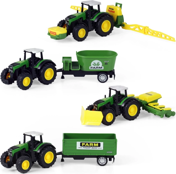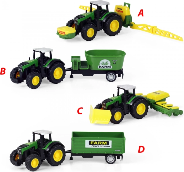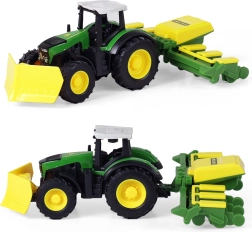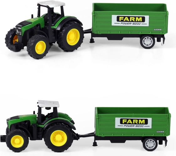 Fedezze fel a gazdálkodás varázsát ezzel a modern traktorral és leválasztható utánfutójával. Az egyszerűen leválasztható utánfutó rugalmasságot biztosít különböző farm tevékenységekhez. A traktor szabadonfutó meghajtással rendelkezik és körülbelül 18 cm hosszú az utánfutóval együtt. Válasszon a 4 különböző modell közül, amelyek kidolgozott dizájnjukkal és valósághű részleteikkel lenyűgöznek.