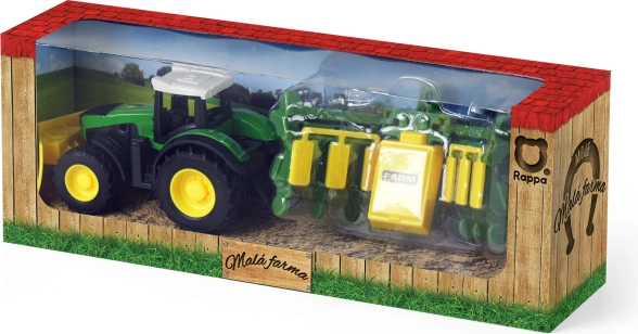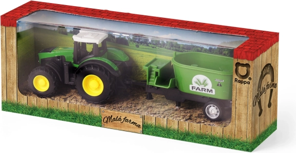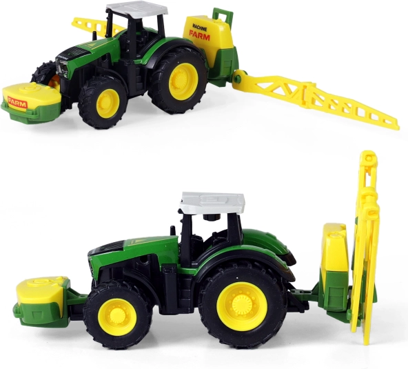 A traktor utánfutóval a részletekre való odafigyeléssel készült, valódi mezőgazdasági gépek mintájára, amely segíti az oktató jellegű játékot.