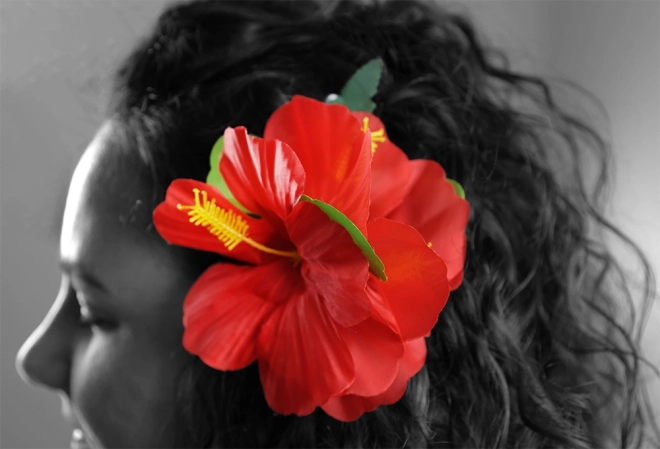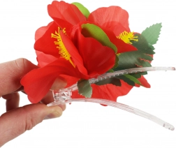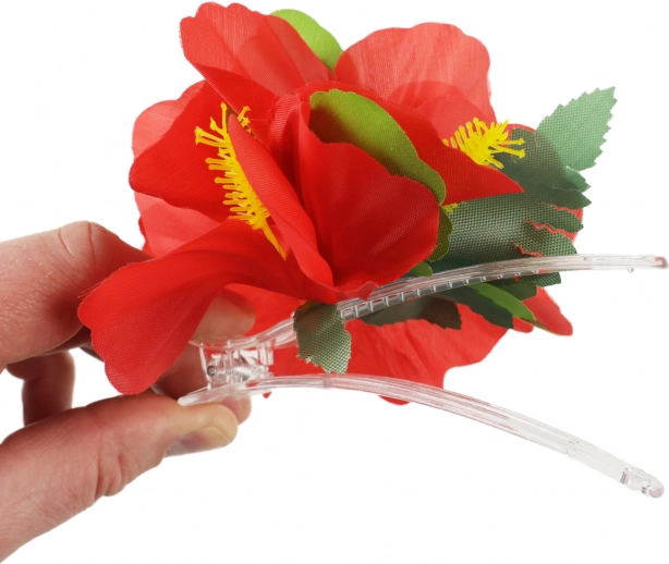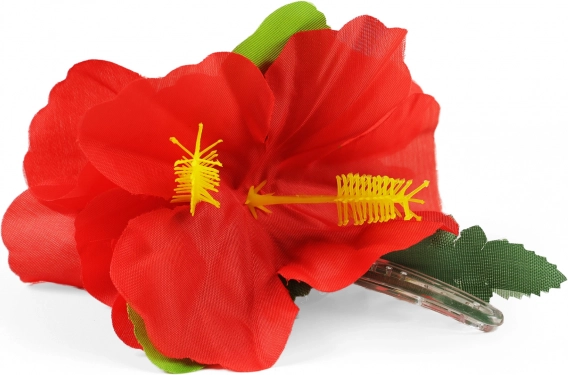Ez a virágos hajcsat egzotikumot hoz közvetlenül a stílusába. Élénk vörös virágaival és zöld leveleivel bármilyen esemény királynőjévé varázsolja Önt, legyen az tengerparti buli, hawaii est vagy medenceparti.