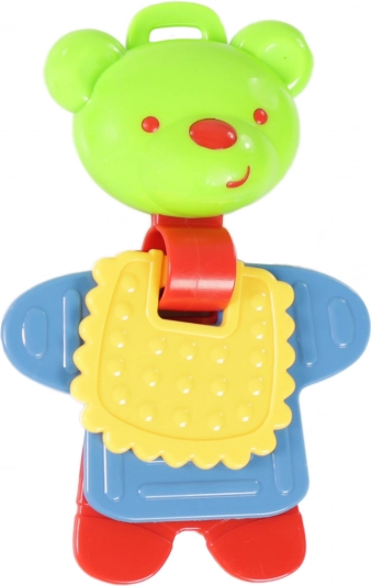 Biztonságos műanyagból készült, a csörgő úgy lett tervezve, hogy könnyen megfogható legyen apró kezekkel.