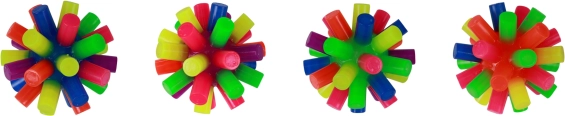 A puha anyagú tüskék kényelmes fogást és érdekes tapintási ingert adnak, ami segíti a finom- és nagymozgások fejlődését. Konkrét típus nem választható, a csomag vegyes színeket tartalmaz. Csak teljes display csomagban, 12 db-os kiszerelésben kapható.