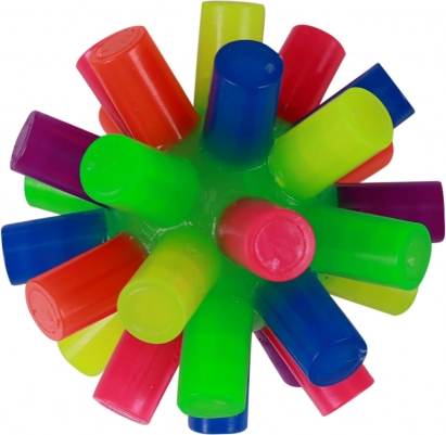A világító, rugalmas tüskékkel ellátott pattogó labda rengeteg mozgást és örömöt nyújt. Minden eldobásnál és leérkezésnél a fény aktiválódik, felkelti a figyelmet és támogatja az aktív játékot. Az élénk színeknek és a fényhatásoknak köszönhetően a labda kiváló választás beltéri és kültéri szórakozáshoz egyaránt.