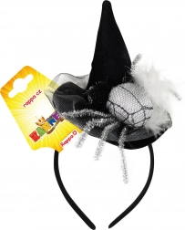 A feltűnő fejpánt mini kalappal és pókkal remek kiegészítő bulikra vagy farsangra. Ideális a hajba boszorkányünnepre vagy Halloweenre.