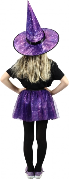 A lila boszorkány jelmezt csillagos dekorral kiegészítve gyermeke ragyogni fog minden partin.