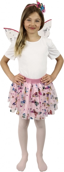 Változtassa kis hercegnőjét elbűvölő pillangóvá ezzel a csodálatos jelmezzel. A rózsaszín szoknya színes pillangókkal tökéletesen kiegészül a díszes fejpánttal és pillangószárnyakkal. Tökéletes választás színlelt játékhoz vagy karneváli ünneplésekhez.