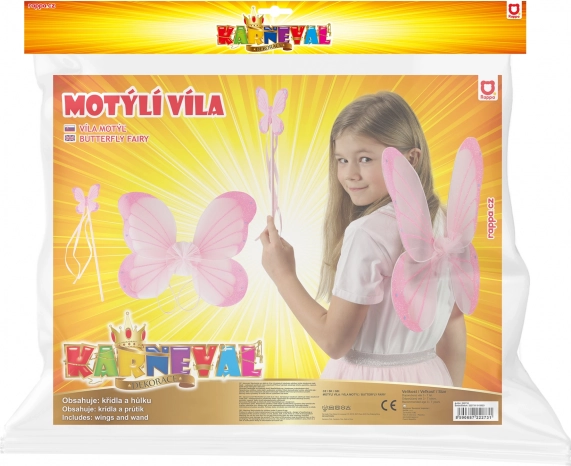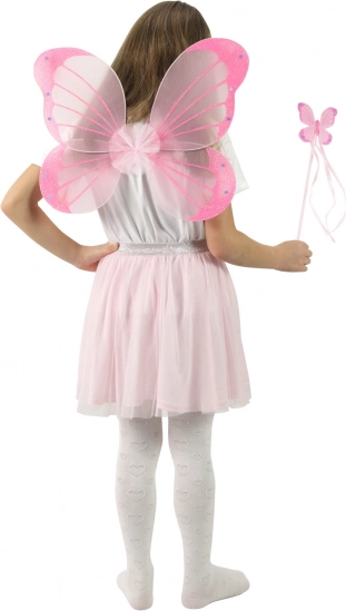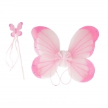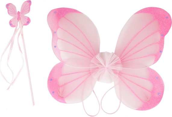 Rózsaszín szárnyak és pálca pillangó mintával ideálisak karneválokhoz, jelmezekhez és tündérekkel való játékhoz.