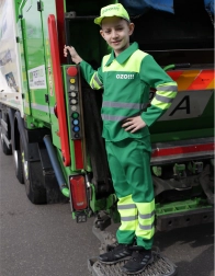 Ez a jelmez ideális minden kis kukásautó-rajongónak! A szett tartalmazza a feliratos blúzt, sapka és nadrág, mind fényvisszaverő elemekkel a jobb láthatóság érdekében.