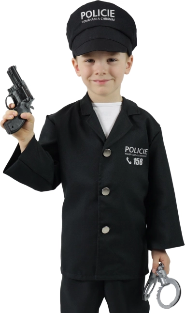 Remek választás farsangra, jelmezbálra és gyerekzsúrokra. A cseh feliratos rendőr jelmez kényelmes, könnyen felvehető, és a gyerekek azonnal a törvény őrének szerepébe bújhatnak. A szett része a feltűnő POLICIE feliratú blúz, a nadrág és a stílusos sapka.