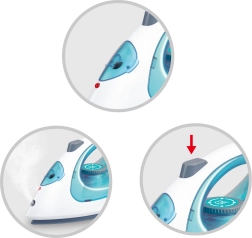 Változtasd a hétköznapi tevékenységeket kedvenc játékká. A fehér-türkiz, gyermek gőzölős vasaló valósághűen világít, hangokat ad ki, és a mellékelt töltőpalackból feltöltött víz után biztonságosan párát bocsát ki. Ideális a babázáshoz és a felnőttek utánzásához.