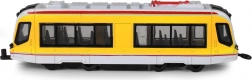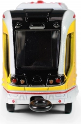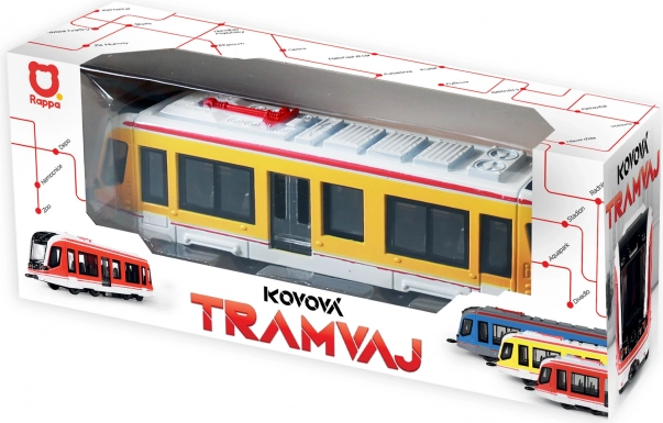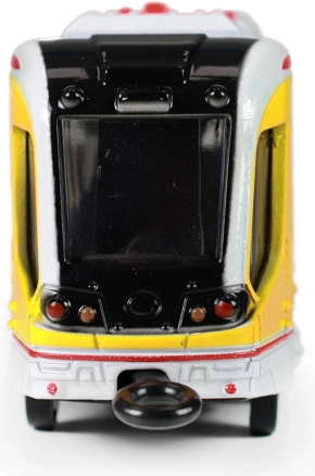 Ez a részletgazdagon kidolgozott fém villamos ikonikus sárga színben valósághű megjelenést és a gyerekek által kedvelt funkciókat kínálja. A masszív fém kivitel hosszú élettartamot biztosít, míg a könnyen kezelhető visszahúzós meghajtás rengeteg szórakozást nyújt haladás közben.