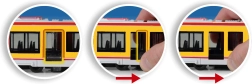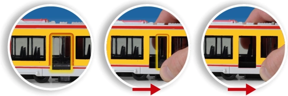 A valósághű játékot a kézzel nyitható ajtók támogatják. Az ajtók alatt található egyszerű kar könnyű nyitást és zárást tesz lehetővé.
