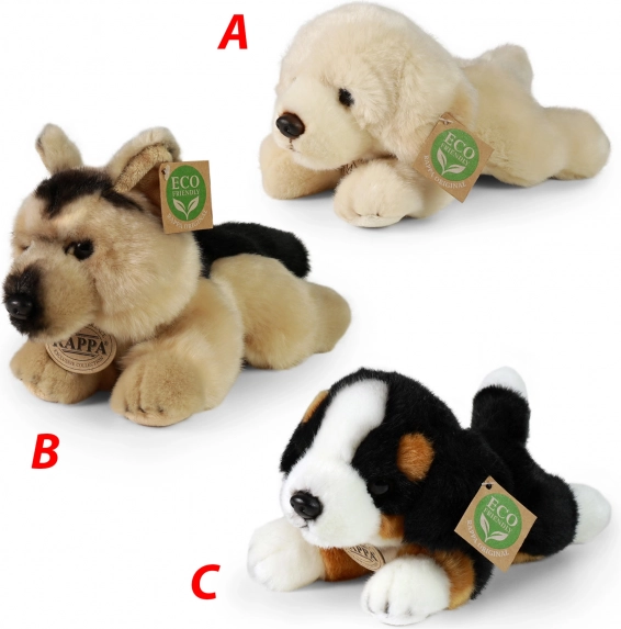 A 20 cm-es, háromféle változatban elérhető, aranyos fekvő plüss kutyus örömet szerez a gyerekeknek és a gyűjtőknek egyaránt. Minőségi, puha plüssből készült, és a RAPPA exkluzív kollekciójának része. A visszaforgatott PET-palackokból készült töltet környezetbarát, biztonságos, és tapintásra megkülönböztethetetlen a hagyományos töltettől.