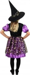 Változtasd kislányodat a Halloween vagy a farsangi bál kis sztárjává! Az elegáns lila–fekete ruha arany pöttyökkel és visszafogott részletekkel fotókon és a táncparketten is csodásan mutat. A szetthez összeillő, hegyes sapka is tartozik, így az öltözék pillanatok alatt teljes.