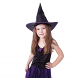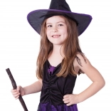 A fekete–lila színű gyerek boszorkányjelmez tökéletes választás a varázslat és a fantázia kis rajongóinak. A pehelykönnyű ruhát pókhálóminta díszíti, és a kalappal együtt harmonikus, feltűnő szettet alkot, amely bármely bulin kitűnik.
