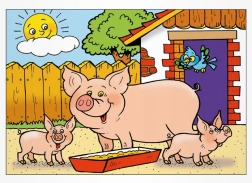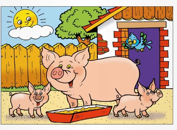 - 8 (cica és kiscicák, bárány, kutya, malacok, kakas és tyúkok, csikó és csikók, tehén borjúval, liba)