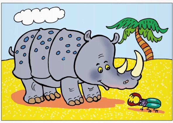 8 aranyos színezhető előképet talál benne: kakas, orrszarvú, nyúl, róka, víziló, ló, papagáj és elefánt. A kifestő kiváló otthoni szórakozáshoz, óvodába vagy apró ajándéknak. A legjobb eredmény érdekében javasoljuk jó minőségű színes ceruzákkal kombinálni.