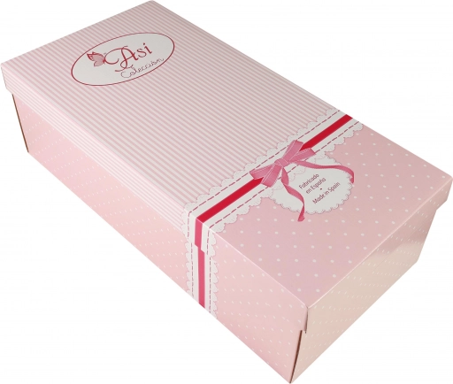 Az ASI családi márka María babája Spanyolországban készül, a minőségre és a biztonságra helyezett hangsúllyal. A teljes vinil test kemény és masszív, ugyanakkor kellemes tapintású és minden részletében, beleértve a nemet is, precízen formázott. A realista megjelenést a nem pislogó kék szemek és a finom szempillák erősítik.