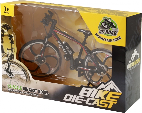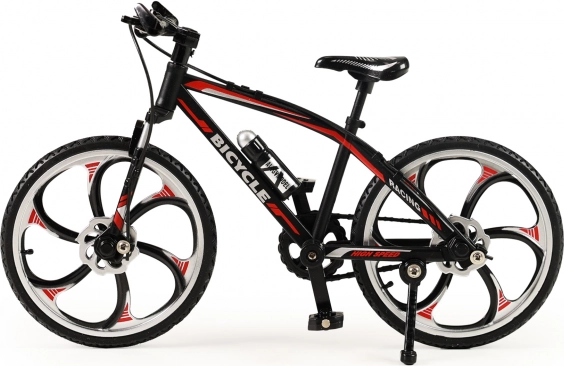 Fedezze fel a részletgazdag mini hegyikerékpárt elegáns fekete színben piros akcentusokkal. Ez a fém modell szabadonfutó kerekekkel hűen utánozza a valódi kerékpárt – a váztól a kormányig és a karakteres felnikig. Kiváló ajándék a kerékpározás szerelmeseinek, és dekorációként is remekül mutat asztalon vagy polcon.