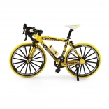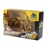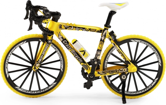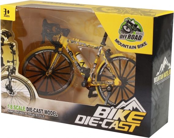 A miniatűr sárga hegyikerékpár remek választás azoknak a gyerekeknek, akik szeretik az akciót és a mozgást, valamint a felnőtt gyűjtőknek. A szabadon futó kerekeknek köszönhetően könnyen elindul és simán halad a sík felületen. A valósághű kivitel polcon és játék közben is remekül mutat.