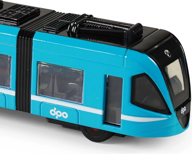 Kék modern villamos visszafelé történő mozgási funkcióval kiváló ajándék a városi közlekedés szerelmeseinek. Realisztikus design és nyitható ajtók fokozzák a játék vonzerejét.