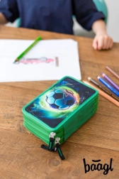Háromszintes iskolai tolltartó futball labda dizájnnal, amely extra helyet biztosít minden írószernek, beleértve az erős ceruzákat és filctollakat, köszönhetően az alkalmazkodó gumipántoknak. Kiváló minőségű cipzárral rendelkezik és erősített gerinccel a könnyű kezelhetőség érdekében.