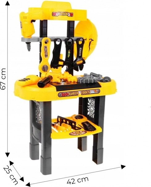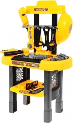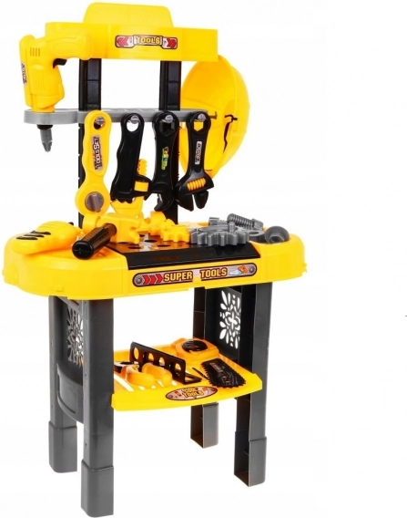 A gyerek műhely úgy készült, hogy a profi munkapadokat utánozza, és tartalmazza a legfontosabb eszközöket a szórakoztató és alkotó játékhoz.