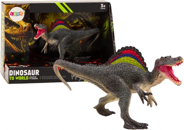 - Realista megjelenés: A spinoszaurusz figura jellegzetes hátgerincét kék, piros, sárga és fekete színekkel festették meg, míg hatalmas állkapcsában éles fogakat láthatunk.