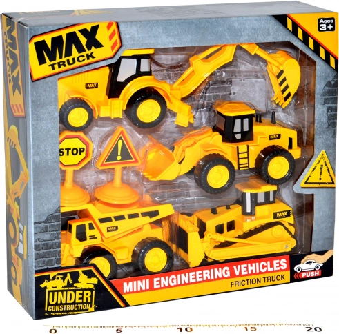 Építőgép készlet kis építész rajongók számára. Négy különféle gépet tartalmaz, beleértve buldózereket és kotrógépeket, amelyek bővítik a játék lehetőségeit.