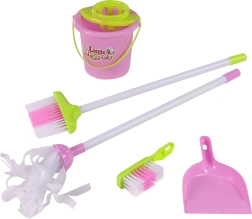 A Little Helper gyermek takarítószett tökéletes a kis háziasszonyok számára, akik szeretnének takarítóst játszani. Ez a szórakoztató készlet tartalmaz egy rózsaszín-zöld vödröt, seprűt szemeteslapáttal, nagy seprűt és mopot.
