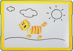 Ajándékozd meg gyermekeidet ezzel a csodálatos gyermek mágneses rajztáblával. A tábla praktikus állvánnyal rendelkezik az asztalra és mérete 29 x 21 cm. A csomag körülbelül 105 színes mágneses darabot tartalmaz, amelyek lehetővé teszik a gyerekek számára különböző képek és jelenetek készítését. Továbbá a csomagban található egy toll is, amelynek segítségével rajzolni vagy írni is lehet a táblára.