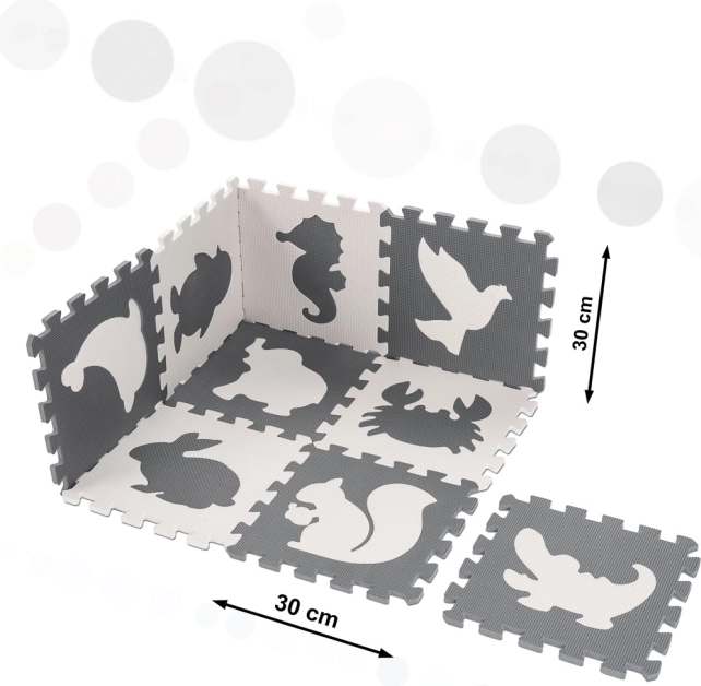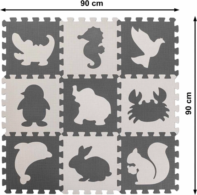 Ez az edukációs habszivacs puzzle szőnyeg állatmintás dizájnnal, tökéletes választás minden gyermek számára. Mérete 85 x 85 cm, és 9 darabra bontható.