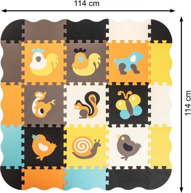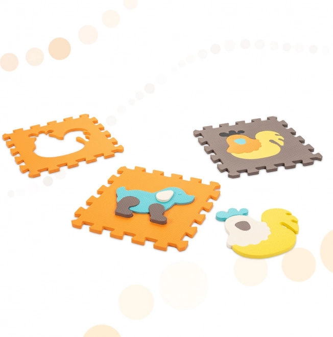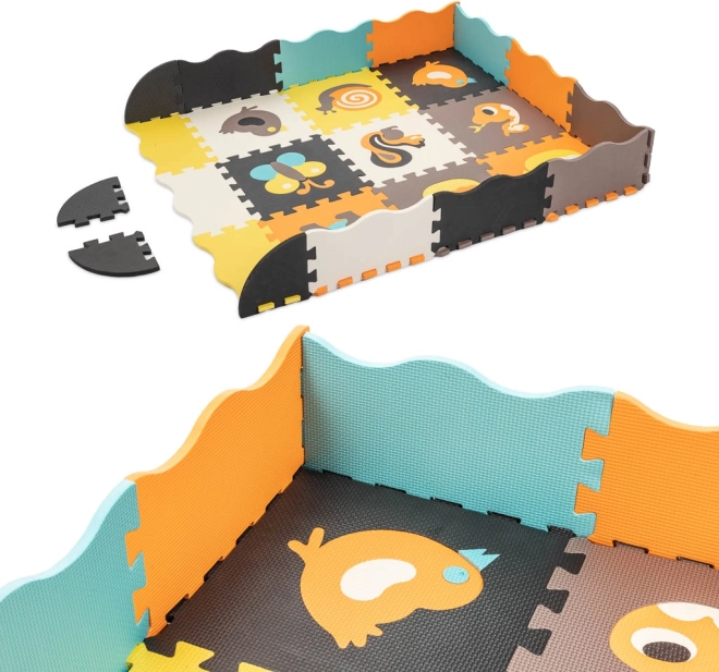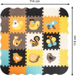 A kirakós tartalma 9 darab állatkás puzzleből és 16 darab keretből áll, melyek lehetővé teszik a színes és formagazdag játéktér kialakítását.