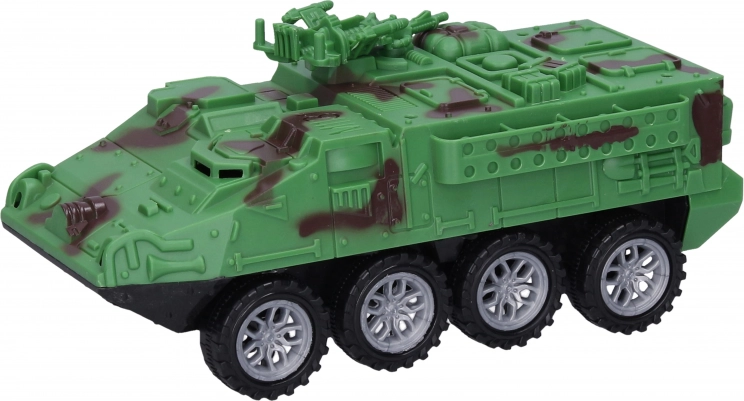 Ez a katonai jármű ideális ajándék olyan gyerekek számára, akik szeretik a katonai kalandokat. Tehetetlenségi meghajtás egyszerű és szórakoztató mozgást biztosít elemek nélkül.