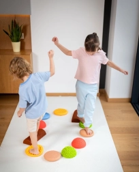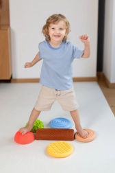 A Tullo érzékszervi út 6 különböző elemből áll, melyeket szabadon kombinálhatunk, így egyedi akadálypályákat hozhatunk létre. Minden elem különböző tapintási érzetet nyújt, a finom kiemelkedésektől a hangsúlyos textúrákig, gazdag érzékszervi élményt biztosítva és serkentve a gyermeklábak fejlődését.