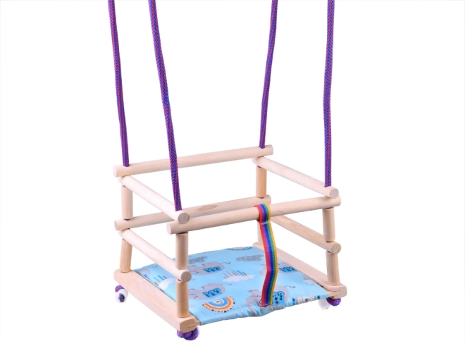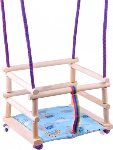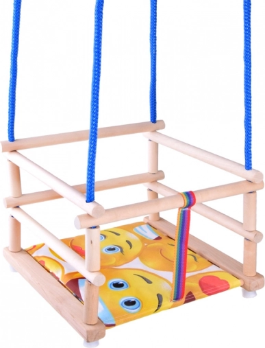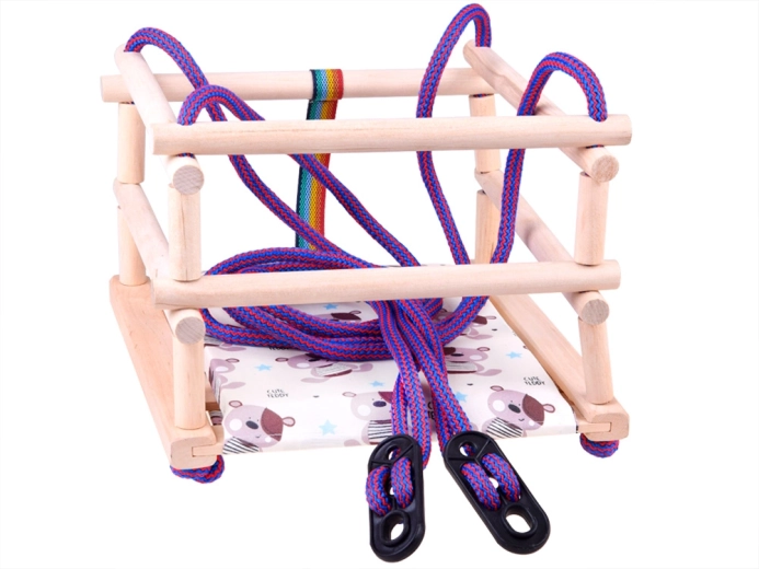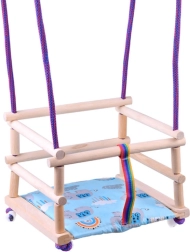 A biztonságot egy biztonsági pánt biztosítja, amely megóvja a gyermeket a hintából való kieséstől.