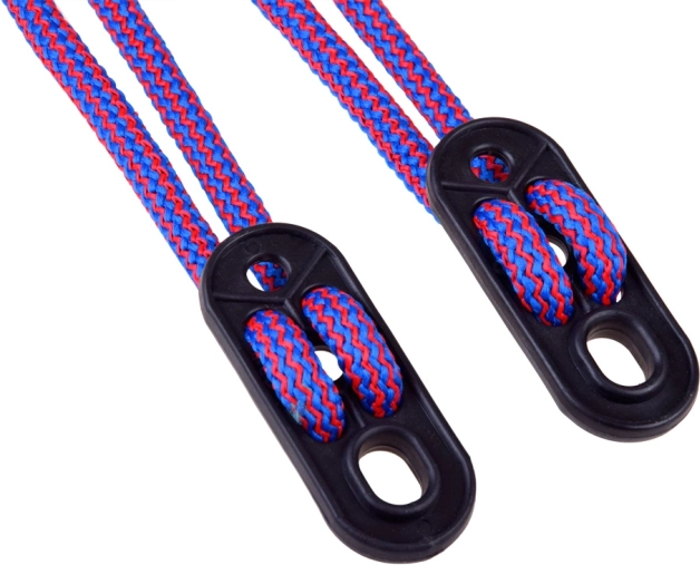 A kötelek műanyag akasztókkal végződnek, amelyek lehetővé teszik a hinta gyors felszerelését vagy leszerelését a horgokról.