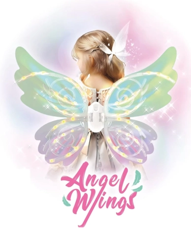 A Világító varázsszárnyak gyerekek számára készültek, akik varázslatos kalandokra vágynak. A szárny közötti gomb megnyomása után két szórakoztató mód aktiválódik. Az első módban a szárnyak csapkodnak, világítanak és mesebeli zene szól, amivel a gyerekek úgy érezhetik magukat, mint a bűvölet és varázslat birodalmának kis tündérei. A második módban a szárnyak világítanak és csapkodnak hangkíséret nélkül, lehetővé téve a nyugodtabb játékot.