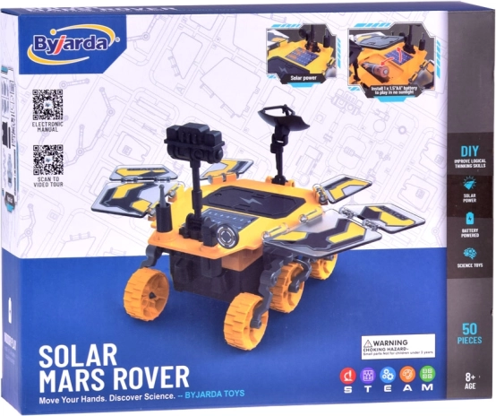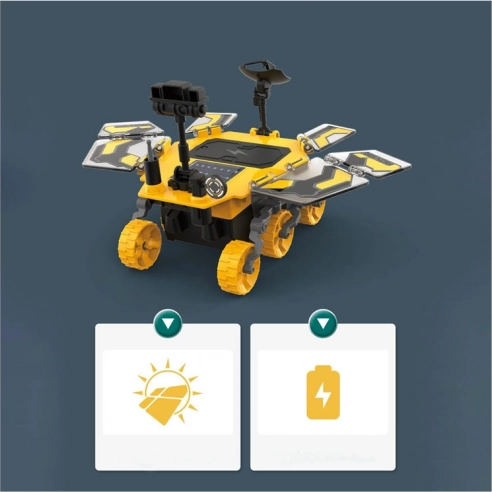 Ez a készlet mindent tartalmaz, ami szükséges a marsjáró modell összeállításához. A napelem használatával a modell akkumulátorok nélkül mozog, bemutatva a gyerekeknek a napenergia gyakorlati alkalmazását. 50 kiváló minőségű műanyag alkatrészből áll, biztosítva a modell tartósságát és hosszú élettartamát.