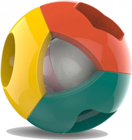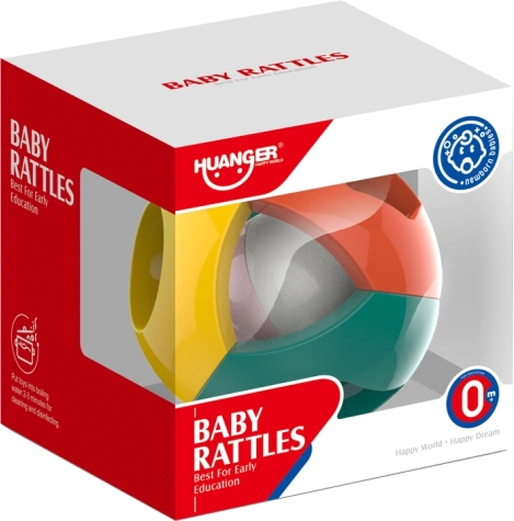 Vidám csörgő labda a legkisebbeknek, amely támogatja az érzékelés, a fogás és a kéz–szem koordináció fejlődését. Könnyű, könnyen megfogható és biztonságos a lekerekített éleknek köszönhetően. Belül egy kis golyó rejtőzik, amely mozgás közben kellemesen csörög, az oldalakon pedig geometriai alakzatok formájú nyílások teszik érdekessé a felfedezést. 0 hónapos kortól ajánlott, CE tanúsítvánnyal és EN 71 szabványnak megfelelően.