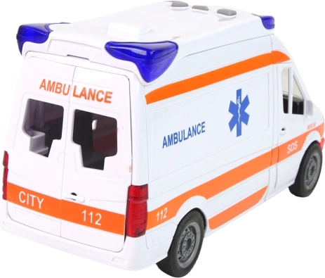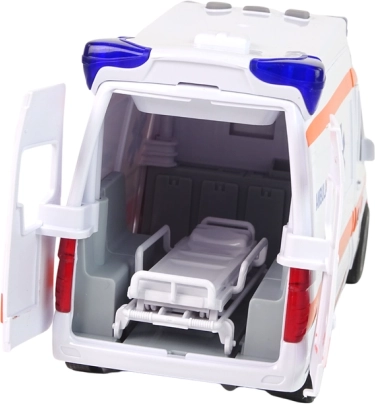 A szirénával és kék villogóval felszerelt mentőautó minden fiatal egészségügyi sofőr számára remek választás. Az autó teljes egészében műanyagból készült, a mentőautókra jellemző színvilágban. Az első kerekek lendkerekesek, így a jármű magától gurul. A hang- és fényeffektek a tetőn lévő gombokkal aktiválhatók.