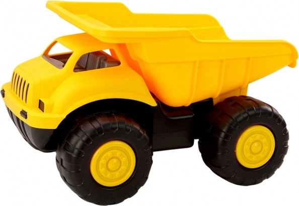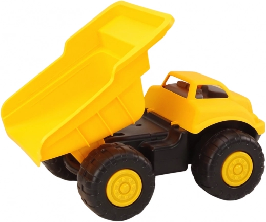 A nagy billenőplatós teherautó gyerekeknek remek játék, amely órákig tartó kreatív és lebilincselő szórakozást nyújt kint és bent egyaránt. A jármű sárga színű, amely felkelti a figyelmet és hozzájárul a valósághű megjelenéshez. A billenő teherautó nagy fekete kerekekkel van felszerelve, amelyek stabilitást és könnyű mozgást biztosítanak különböző felületeken, például fűvön, homokon vagy szőnyegen.