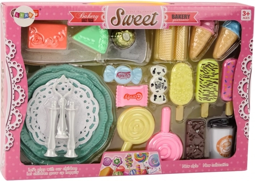Bájos készlet kis cukrászoknak, amely elhozza a fantázia és a kávézós játék világát. Találsz benne gofrit, kekszeket, jégkrémeket, fagyikat, nyalókákat, tortaszeleteket és kávéscsészét, valamint egy háromszintes tálcát, amelynek magassága körülbelül 25 cm. A valósághű részletek és a cukorka színek támogatják a kreatív játékot, a szociális készségeket és a „cukrászda-tulajdonos” szerepjátékot. Biztonságos játék CE tanúsítvánnyal és EN71 szabvánnyal, 3 éves kortól ajánlott.